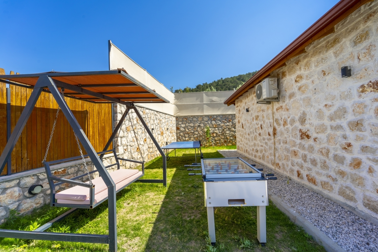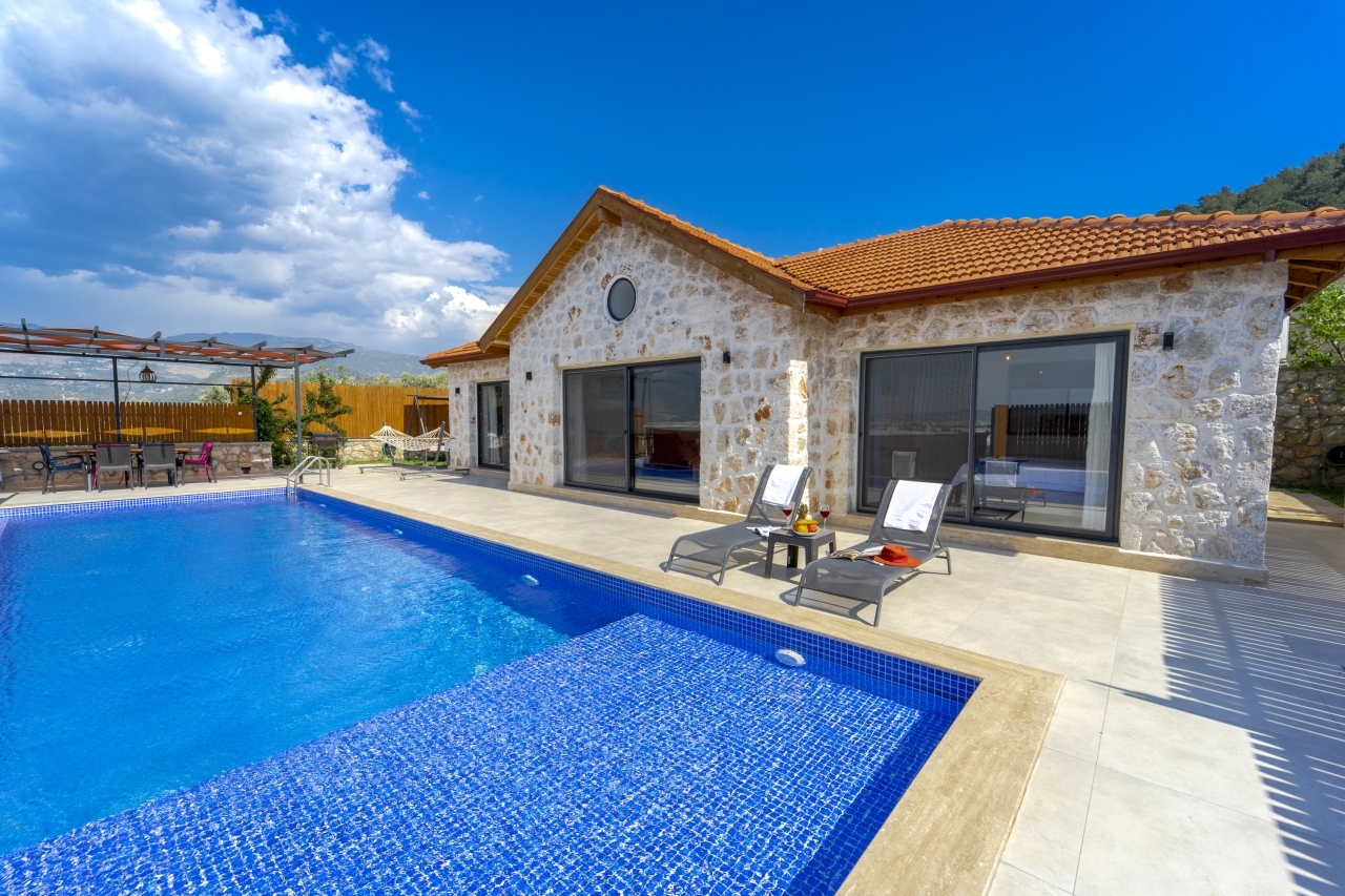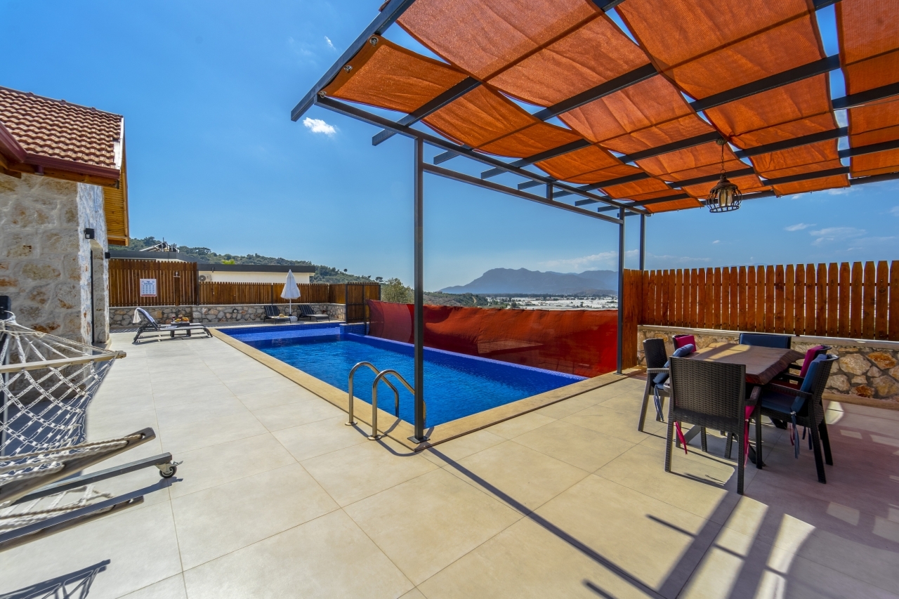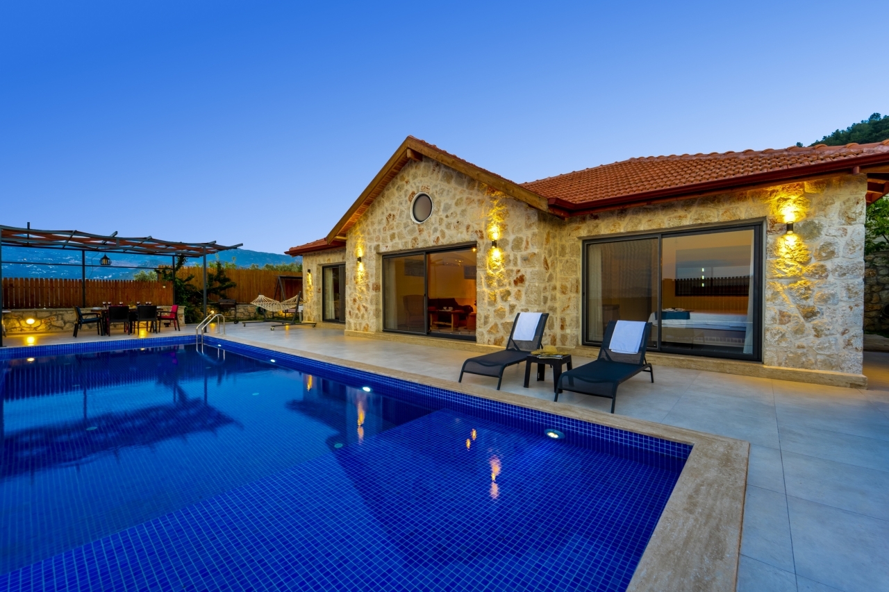 Villa Kaan Gemicik , Kalkan Patara bölgesinde 2 yatak odalı ve 4 kişi konaklama kapasitesine sahip tam korunaklı kiralık tatil villasıdır. 1 kattan oluşan yazlık villanın bir yatak odasında jakuzi bulunmaktadır. Modern ve şık dekore edilen villa muhafazakar aileler ve balayı çiftleri için idealdir. Geniş bahçe ve havuz terasına sahip villada çocuk oyun alanı, langırt, masa tenisi, salıncak, barbekü, şezlonglar ve güneş şemsiyesi mevcuttur. Sizlerin ve çocuklarınızın keyifli vakit geçirebileceği imkan ve olanaklar mevcuttur. Sakin, rahat ve huzurlu bir tatil sizleri bekliyor.