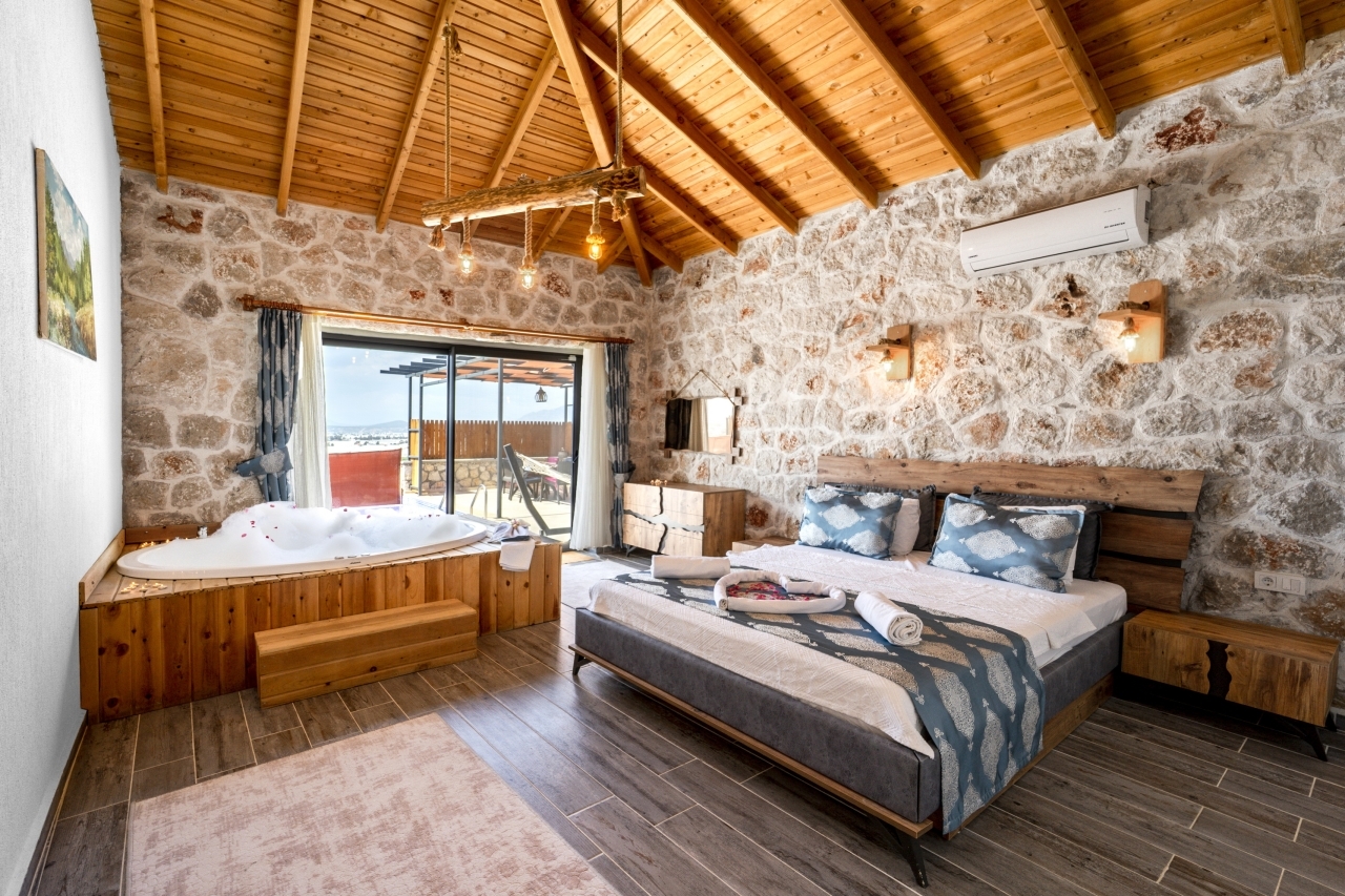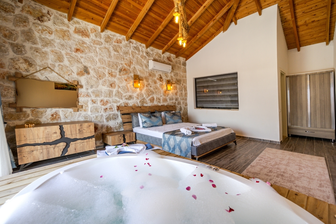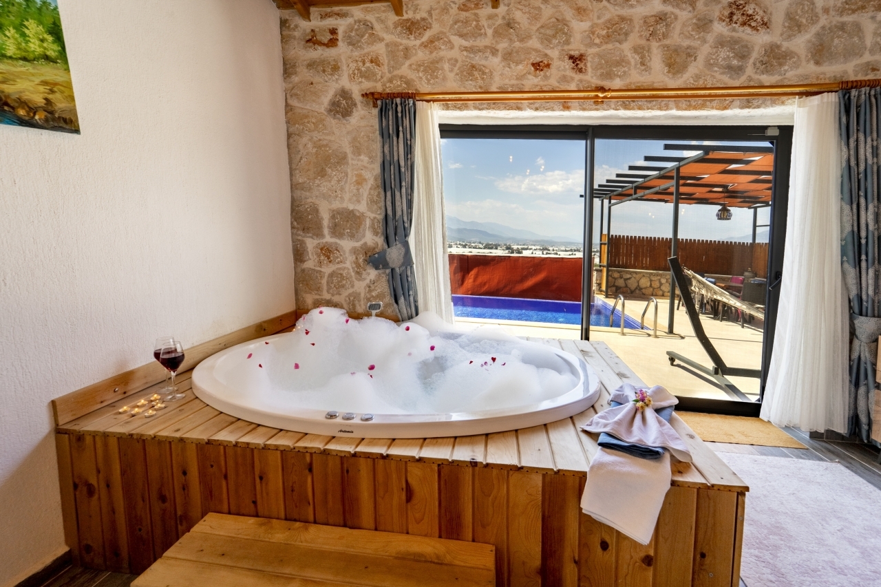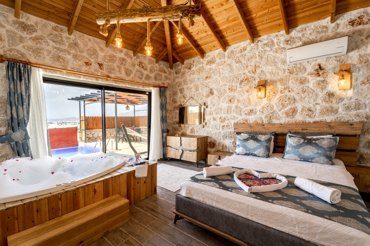 Villa Kaan Gemicik , Kalkan Patara bölgesinde 2 yatak odalı ve 4 kişi konaklama kapasitesine sahip tam korunaklı kiralık tatil villasıdır. 1 kattan oluşan yazlık villanın bir yatak odasında jakuzi bulunmaktadır. Modern ve şık dekore edilen villa muhafazakar aileler ve balayı çiftleri için idealdir. Geniş bahçe ve havuz terasına sahip villada çocuk oyun alanı, langırt, masa tenisi, salıncak, barbekü, şezlonglar ve güneş şemsiyesi mevcuttur. Sizlerin ve çocuklarınızın keyifli vakit geçirebileceği imkan ve olanaklar mevcuttur. Sakin, rahat ve huzurlu bir tatil sizleri bekliyor.