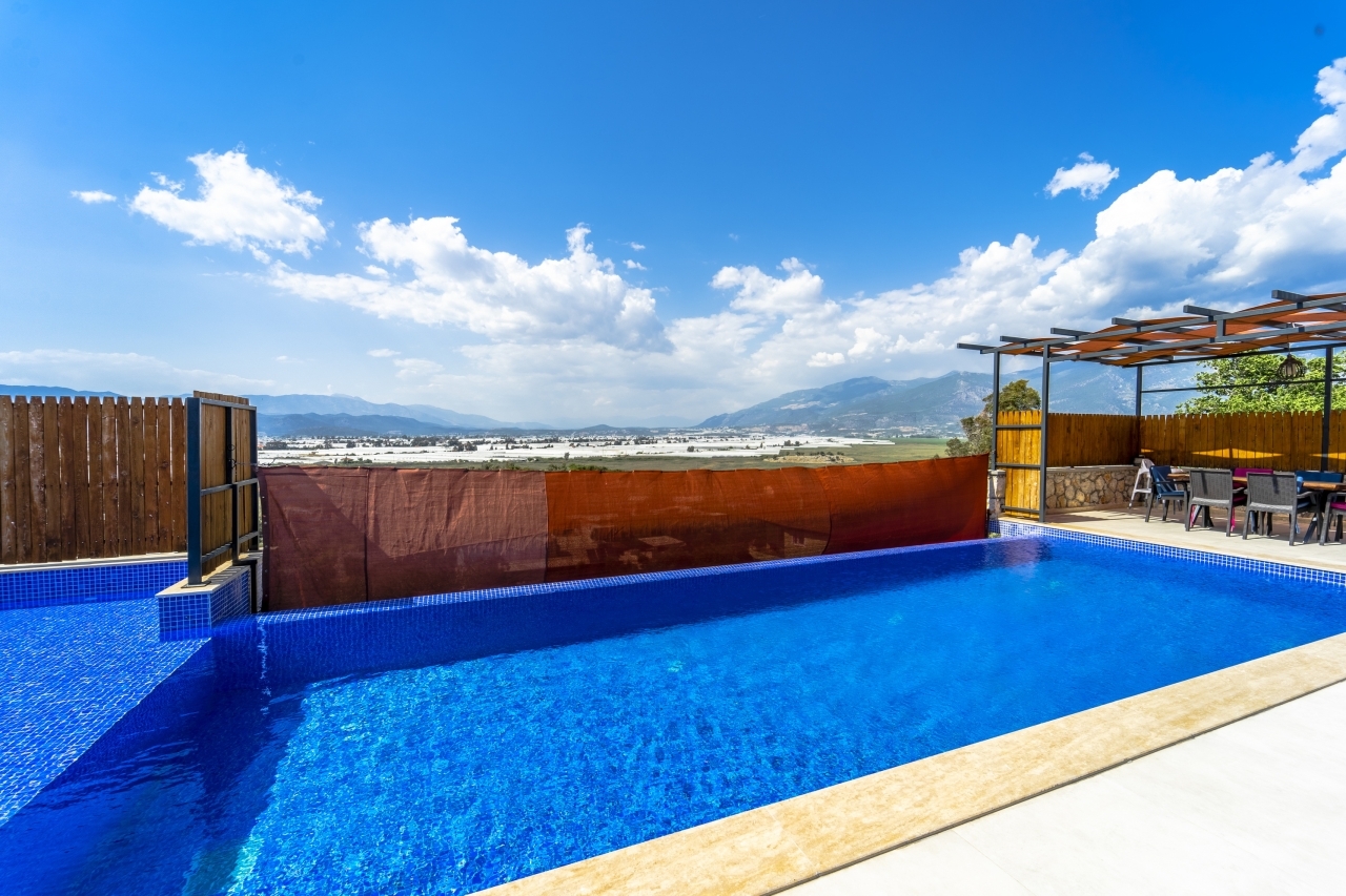 3- Muhafazakar villalarımızda havuzun ve güneşlenme alanının dışarıdan görünmemesi için her türlü önlem alınmaktadır. Fakat balkon, teras, araç park yeri, bahçenin bazı bölümleri vb. alanlarda %100 görünmeme garantisi verilmez. %5 sakınma payı mevcuttur.