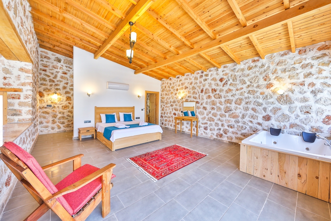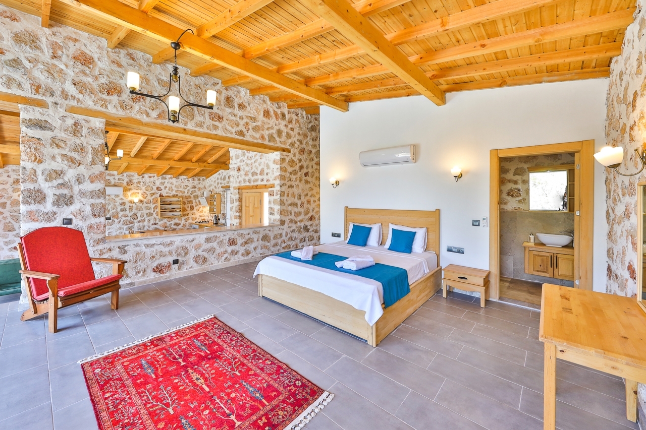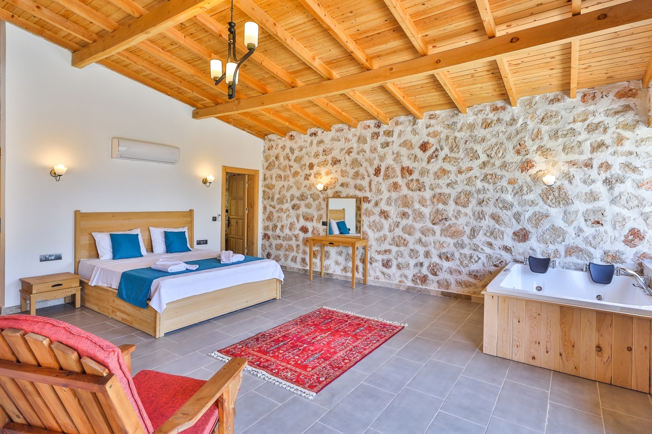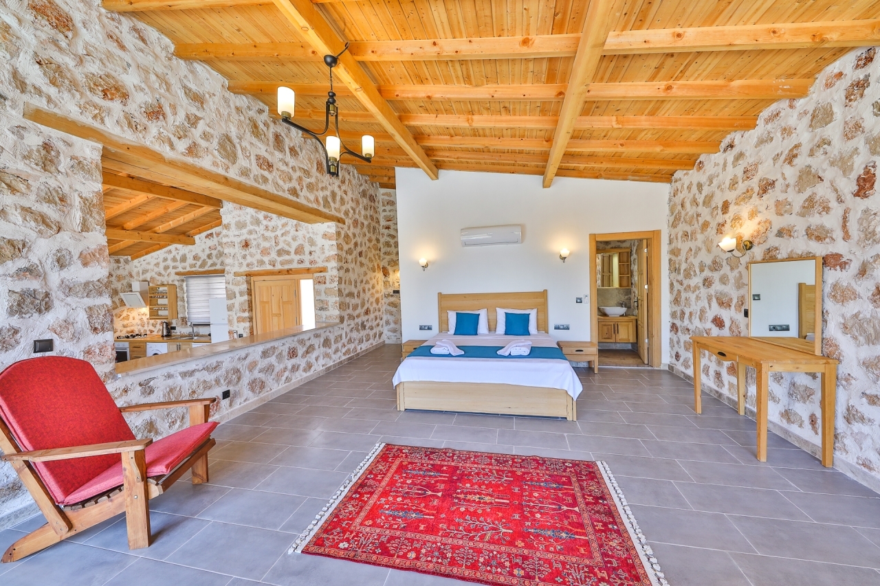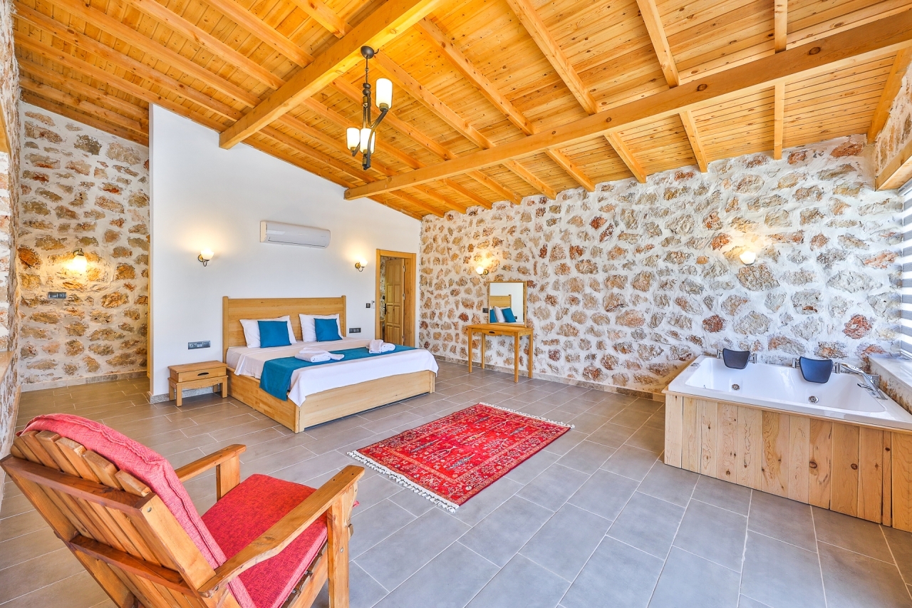 Kalkan ve çevre köyleri, coğrafi yapısı bakımından dağ yamaçlarına konumlanmış yerleşim birimlerinden oluşmaktadır. Bu nedenle villalara ulaşım sırasında yokuş yollar ve stabilize (toprak) yollar bulunmaktadır. (Bu not sadece bu villa ile ilgili değildir. Tüm villaların bilgilerinde yazmaktadır.)