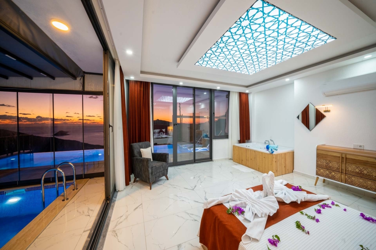 Kalkan Kördere mevkiiinde konumlanmış kiralık Balayı Villası , huzurlu ve konforlu bir tatil isteyen konuklarımız için en ideal seçeneklerden bir tanesidir. Isıtmalı havuzu ile de 12 ay yaz kış aktif olan olan villamız ısıtmalı havuzlu villa ve muhafazakar villalar kategorisinde yer almaktadır. Villamız da ısıtmalı havuzun yanında jakuzi de bulunduğu için kış aylarında da çokça tercih edilmektedir. Havuzu korunaklı (Havuzun dışarıdan gözükmediği anlamına gelir) özelliği ile mahremiyete önem veren misafirlerimiz için tatil imkanı sunmaktadır.