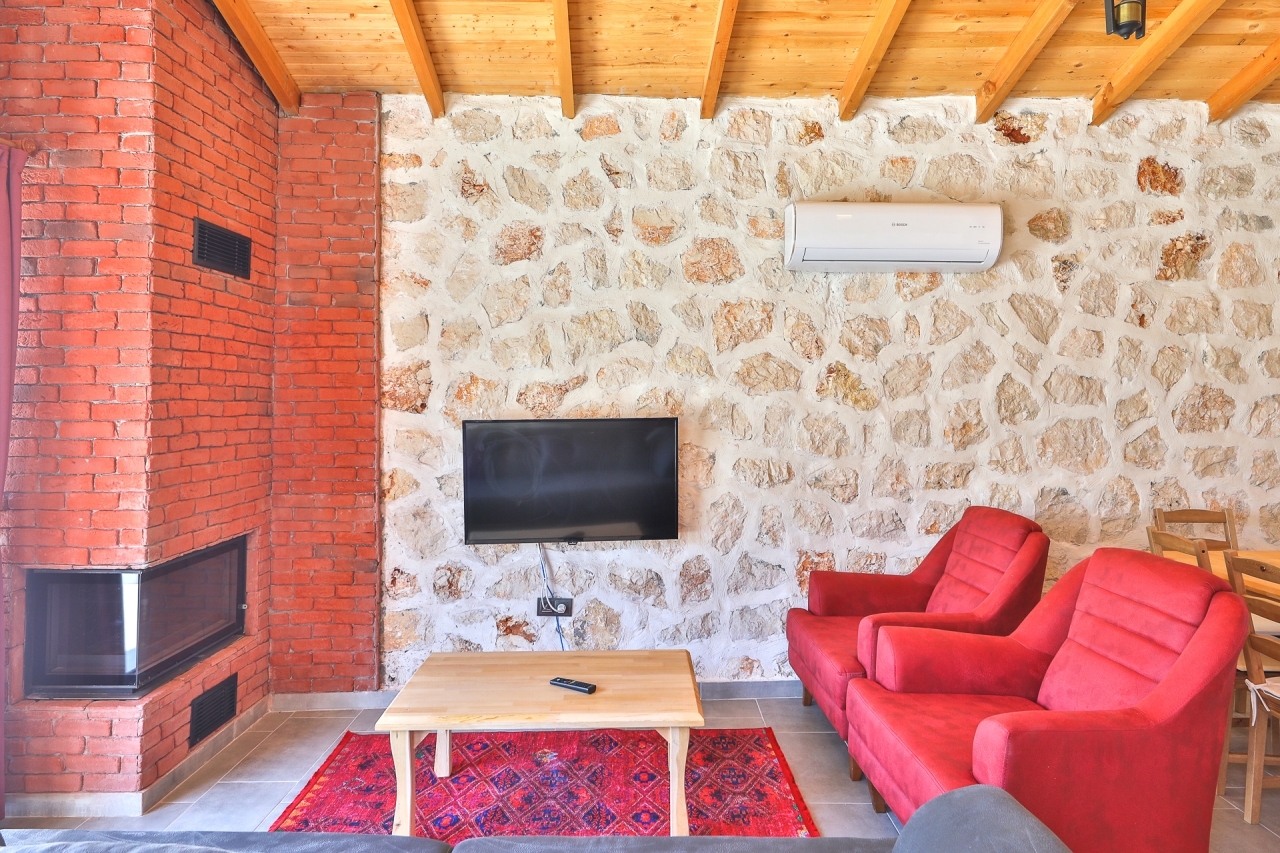 Not: Doğa içerisinde yer alan tüm villalarımızda düzenli olarak ilaçlama yapılmaktadır. Buna rağmen çevrede; kelebek, böcek, sinek, haşere türü hayvanların bulunma ihtimali maalesef vardır. Herhangi bir mağduriyet yaşamamanız adına yanınızda koruyucu vücut spreyi getirmenizi tavsiye ederiz.(Bu not sadece bu villa ile ilgili değildir. Doğa içerisinde konuma sahip olan tüm villaların bilgilerinde yazmaktadır.)