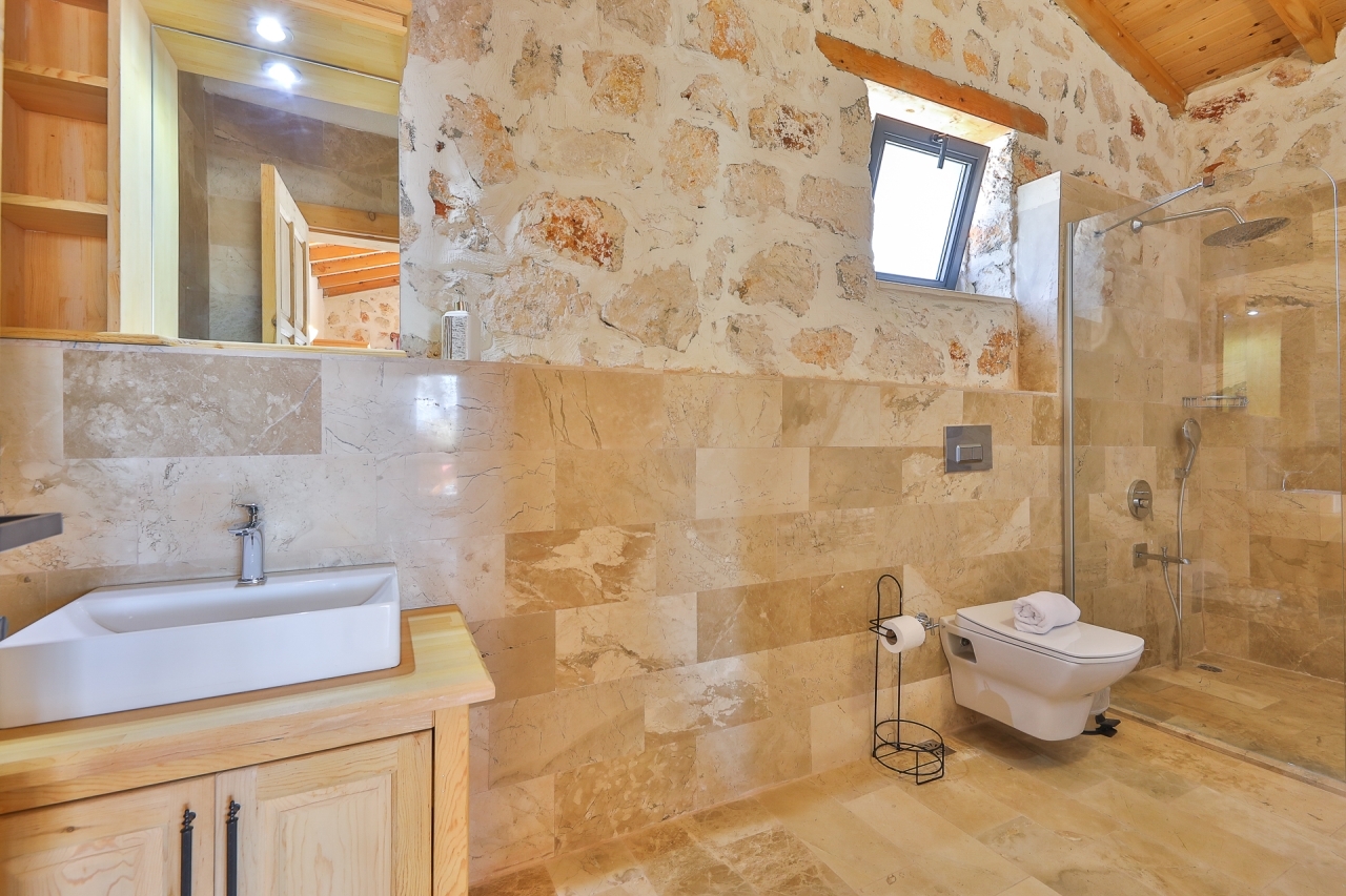Kalkan ve çevre köyleri, coğrafi yapısı bakımından dağ yamaçlarına konumlanmış yerleşim birimlerinden oluşmaktadır. Bu nedenle villalara ulaşım sırasında yokuş yollar ve stabilize (toprak) yollar bulunmaktadır. (Bu not sadece bu villa ile ilgili değildir. Tüm villaların bilgilerinde yazmaktadır.)